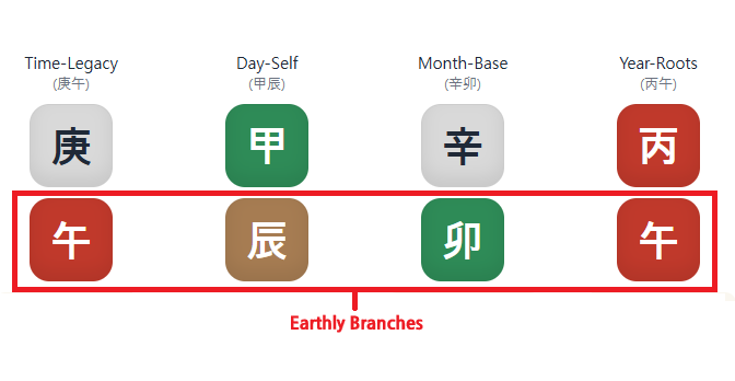 Earthly Branches are the deeper and underlying part of each pillar, showing the inner layer of energy and its connection to time, structure, and support.